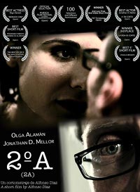 2º A (Alfonso Díaz). El corto a traición cumplió su función habitual de breve pero efectivo contrapeso a la tónica general. Así, 2º A se cuela en mitad de la función de la misma manera que la protagonista se introduce en el cásting personal que un director lleva a cabo para elegir a su siguiente musa: sin hacer demasiado ruido pero con la suficiente mordiente como para noquear al más pintado. Algo tan sencillo a priori y a la vez tan complicado de obtener como atravesar la fina línea separatoria entre representación y realidad es lo que nos ofrece este cortometraje, principalmente mediante la conseguida interpretación (valga la redundancia) de sus actores; en un juego de seducción que tiene mucho de apariencia y que basa su pegada en la capacidad encantadora de la mirada.
