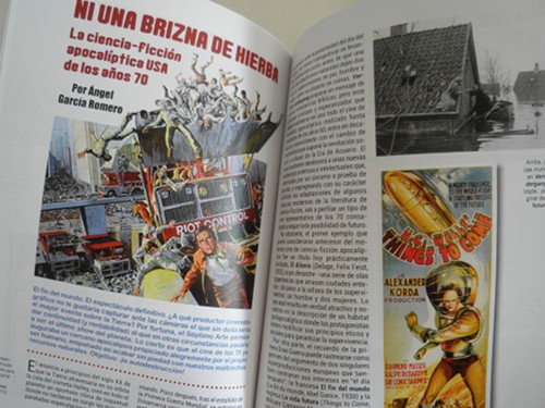 Así es. Toda la cuestión estética, el diseño, la maquetación, la digitalización y selección de imágenes, la coordinación de los autores, las correcciones ortotipográficas y gramaticales, la gestión con la imprenta, etc., son labores que asumo. Añadamos a todo ello la confección de mis propios artículos. En cuanto al diseño, lo que pretendo es dotar de un atractivo visual el resultado último, pero huyendo del barroquismo y lo farragoso, acogiéndome a una sobriedad donde cada elemento tiene su protagonismo dentro de un todo conjuntado. Primero haces un diseño general, que debe responder a la filosofía de la publicación, o al menos no ir en su contra, y luego dispones los elementos buscando la armonía, el equilibrio de masas en las páginas enfrentadas, pero intentando dotarlas de cierto dinamismo mediante la inserción de las imágenes, el quiebro de las columnas de texto, los colores elegidos… Y si a todo ello lo acompañamos con textos enjundiosos y bien escritos (y he aquí la capital importancia de los autores, a quienes agradezco tantísimo su trabajo), el resultado tiene más probabilidades de satisfacer. A continuación entra en juego la imprenta: de ella depende la calidad del acabado técnico, siempre en base a mis indicaciones: papel de tal o cual clase, gramaje, tipo de encuadernación, acabados en brillo o mate, glasofonados… si bien es cierto que a veces la imprenta de turno puede meter la pata encuadernando o guillotinando mal, empastando las imágenes, etc. Y no saben bien la faena que pueden hacer: su labor no finaliza en el momento de entregar la tirada al editor, porque el lector puede dejar de comprar una revista o libro por culpa de un mal trabajo de imprenta y cargarse la continuidad de esa publicación. Por eso el resultado final depende de que cada eslabón de la cadena cumpla bien con su cometido: el editor, el diseñador, los escritores, la imprenta… Lo que no puedo negar es que la actual técnica de impresión digital (mediante la que imprimo Cine-Bis), mucho más económica que el sistema offset de toda la vida, ayuda a afrontar y dimensionar adecuadamente la financiación y el volumen de la tirada. En este sentido, del nº 2 sí te diré que contará con más páginas, y por lo tanto con un sumario aún más amplio.
