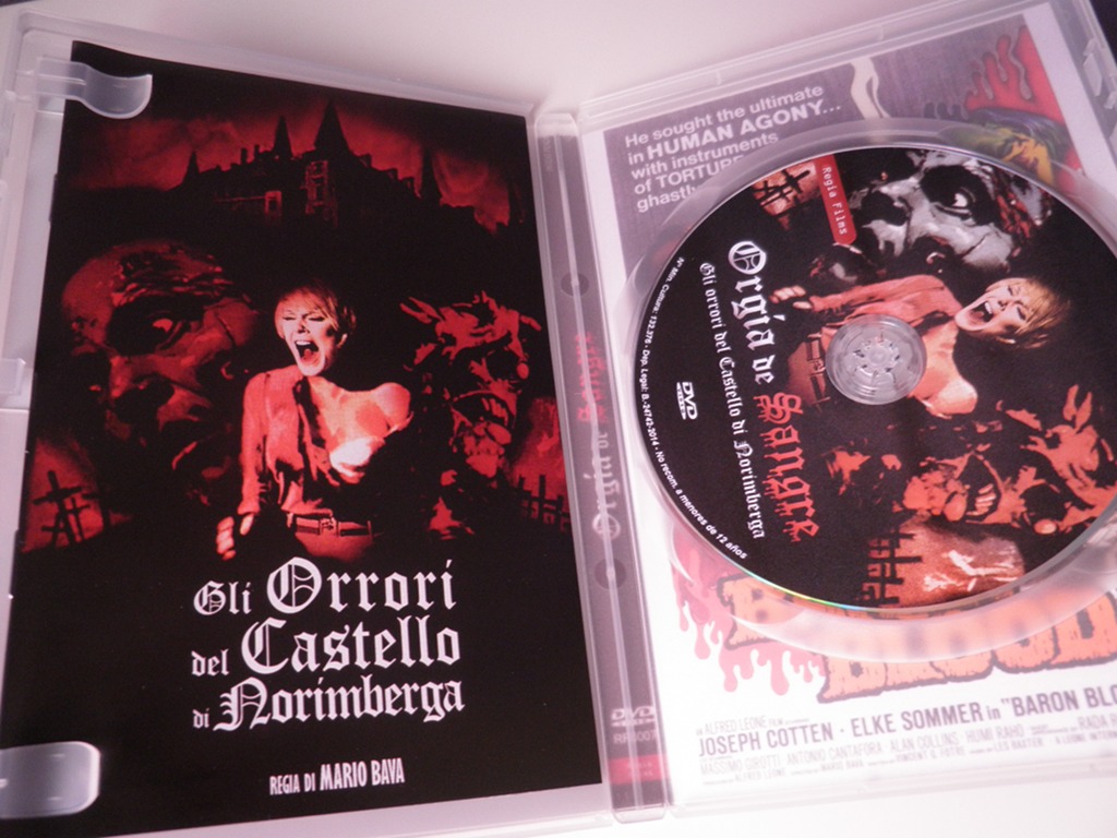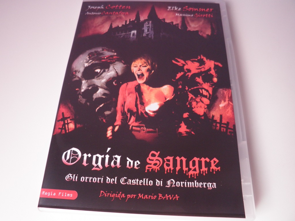 La editora Regia Films prosigue su buena línea de ediciones de cine fantástico y de terror clásico y nos deleita, en esta ocasión, con la recuperación de otro título del maestro italiano Mario Bava: Orgía de sangre. Éste es el título con el que la película apareció por primera vez en España dentro del mercado videográfico; sin embargo, es más conocida por su título norteamericano: Baron Blood, o también a través del italiano: Gli orrori del Castello di Norimberga (que utiliza una discutible traducción literal de la localidad alemana de Nüremberg, cuya relación con la película tiene lugar únicamente por la alusión al instrumento de tortura conocido como «La doncella de Nüremberg»).