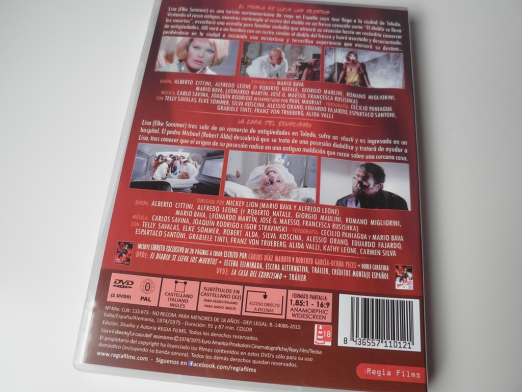Nueva edición de una película dirigida por Mario Bava por parte de Regia Films. Tras Terrore nello spazio y Baron Blood ahora es el turno para El diablo se lleva los muertos (o Lisa and the Devil en su título original anglosajón), antepenúltima realización de su director y estrenada en el año 1974. Se trata de una edición doble ya que, además de la película original, se incluye un segundo dvd con la versión «bastarda» parida a raíz de la insistencia del productor Alfredo Leone por crear un remontaje y añadir algunas escenas que confirieran otro tono a la cinta original… de sospechoso parecido con El exorcista (William Friedkin, 1973), que triunfaba en los cines de todo el mundo por aquella época. Sin embargo Bava se desentendió pronto del proyecto, resultando este en un desaguisado que poco tenía que ver con el malsano espíritu ensoñador de la primera, y que llevó por título La casa del exorcismo (The house of exorcism), guasa extendida al nombre acreditado en los títulos de crédito para la dirección: Mickey Lion.