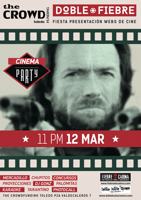 «Doble Fiebre» es el nombre de la fiesta temática en torno al cine que se celebrará el sábado 12 de marzo a partir de las 23 horas en el pub The Crowd Funding para presentar las páginas web toledanas Doble Kulto Cinema y Fiebre de Cabina, especializadas en la materia.