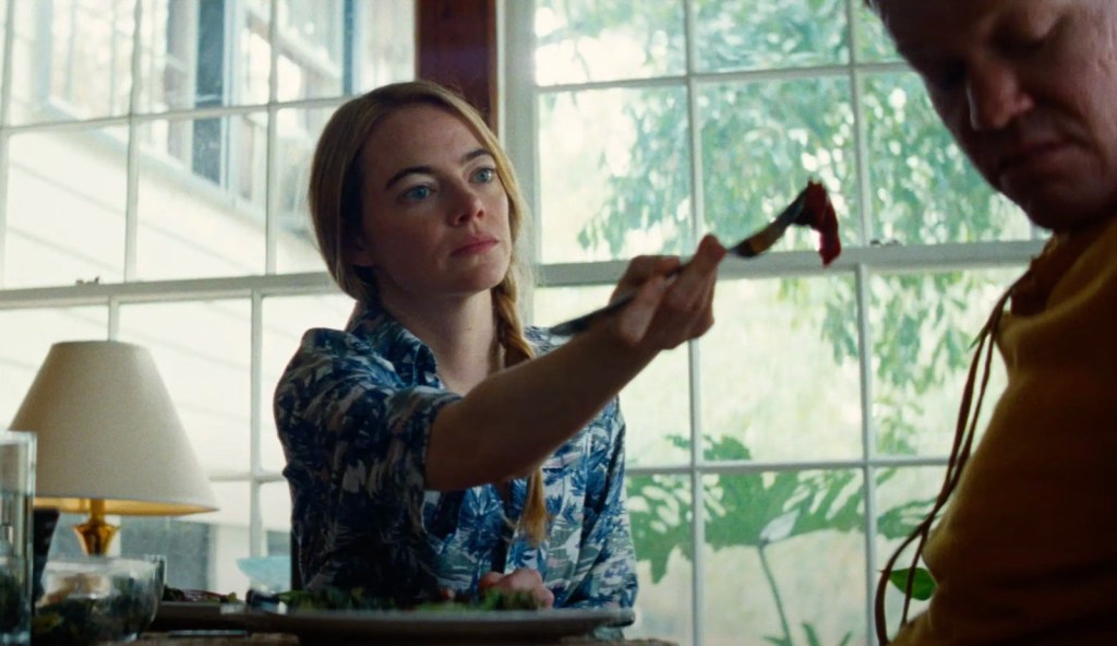 Tres segmentos hilados (es un decir) por la misteriosa figura que responde a las iniciales de “R.M.F” (Yorgos Stefanakos), quien se encarga de abrir la cinta -de manera impecable y dando pistas del metaenrredo al que va a someternos el bueno de Yorgos durante los 165 minutos siguientes: aparca y baja de un coche en el que se escuchaba el elocuente mantra musical de los Eurythmics “Sweet Dreams (Are Made of This)”, en rigurosa prolongación diegética de los títulos de crédito de apertura-, y cuyo aciago destino se anuncia desde el mismo título que preside el primero de ellos. Y todos protagonizados por el mismo conjunto de actores actorazos, con especial preeminencia para Jesse Plemons, Emma Stone (musa confirmada del cineasta) y Willem Dafoe, sin desmerecer la importancia que ostentan Margaret Qualley, Hong Chau y Mamoudou Athie en sus respectivos papeles. Empero, sus personajes son siempre diferentes en cada capítulo, lo que brinda una idea genial acerca de la familiaridad que en realidad es falsa, pero que permite establecer conexiones, vínculos y posibles derivadas en torno a toda esta pléyade de sumos desgraciados, caracteres a cada cual más odioso e ininteligible, y sin embargo fieles practicantes de una fe inquebrantable en sus, a menudo, absurdas acciones.